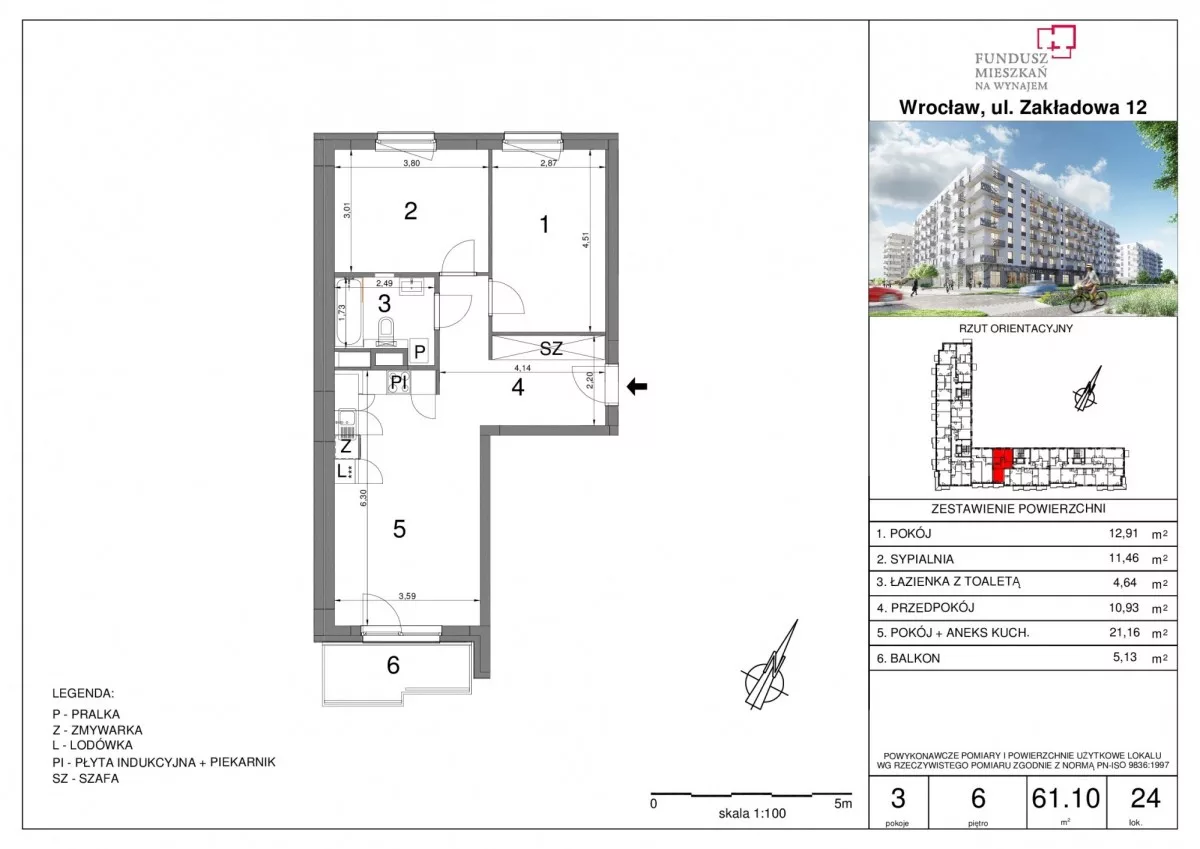 Przestronne trzypokojowe mieszkanie z aneksem kuchennym, zaprojektowane z myślą o komforcie codziennego życia. Lokal składa się z salonu z aneksem kuchennym, dwóch oddzielnych pokoi oraz wykończonej łazienki. Kuchnia jest wyposażona w sprzęty AGD, a mieszkanie oferowane jest bez mebli ruchomych, co umożliwia aranżację według własnych